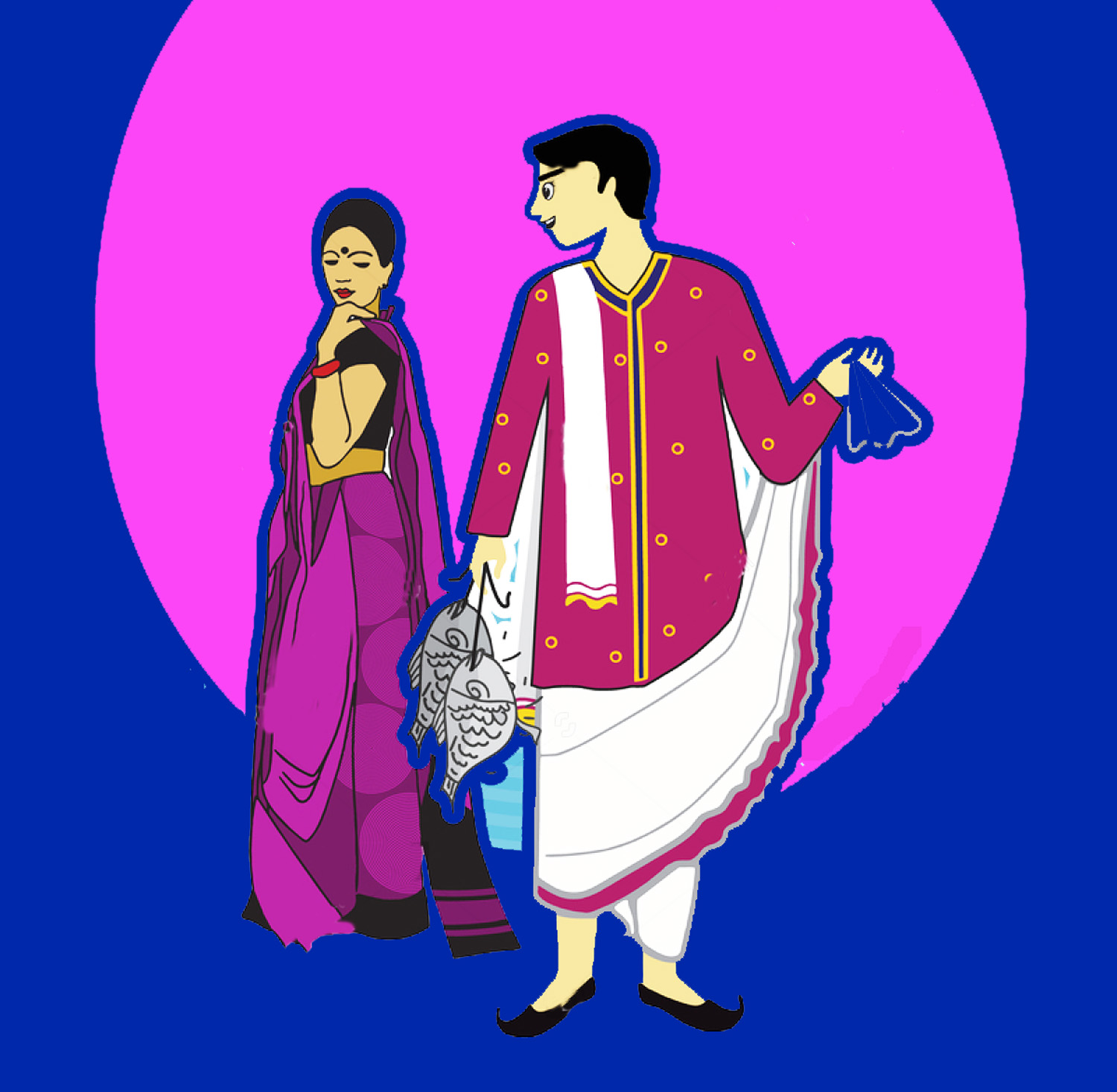 মেয়ের বাবা ঝোলা হাতে; আম, কাঁঠাল আর ইলিশ তাতে;