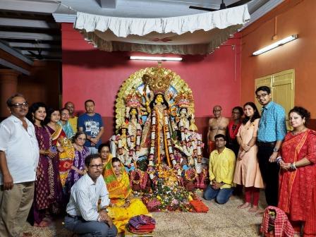 এ বছর পুজো অনুষ্ঠিত হল শোভাবাজারে। রূপোর অলংঙ্কারে সাজানো হয় মা দুর্গাকে। খাঁড়া থেকে ত্রিশূল, পদ্ম সবই রূপোর। মায়ের জন্য একেকদিন একেকরকম ভোগের ব্যবস্থা থাকে। যেমন মন্ডা–মিঠাই, ক্ষীর, ছানা, নানারকম সন্দেশ, উপ্রা ইত্যাদি। রোজই মাকে উৎসর্গ করা হয় কুমড়ো, চাল কুমড়ো, মানকচু, নারকেল, বাতাবি লেবু ও আখ। মহালয়ার আগে পঞ্জিকানুযায়ী শুভ তিথিতে পরিবারের সব মহিলা সদস্যরা এক জায়গায় মিলিত হয়ে বানান দুর্গা ও লক্ষ্মী পুজোর নারকেল নাড়ু, ক্ষীরের নাড়ু, মোয়া, উপ্রা ইত্যাদি।