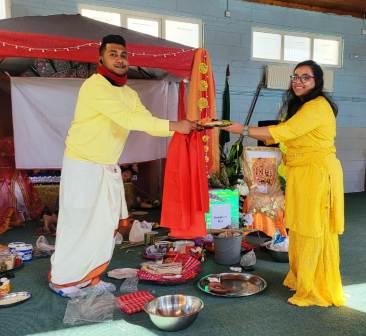ভিএইচসিসিআই মন্দিরে আয়োজিত পুজো সবচেয়ে অন্যমাত্রা নিয়েছে। এখানে সন্ধিপুজোর আয়োজনে রয়েছেন সুদীপ সান্যাল ও সঙ্ঘমিত্রা সান্যাল।