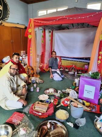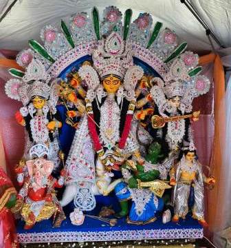 কমিউনিটি হলে হয় পুজোর যাবতীয় ব্যবস্থা। নিয়ম, নিষ্ঠা যেমন আছে; তেমনই এই পুজোর সঙ্গে জড়িয়ে রয়েছে আন্তরিকতা। পুজোয় ঢাকের বাদ্যির সঙ্গে মাঝেমাঝে মিশে যাচ্ছিল মহিষাসুরমর্দিনি। মনে হবে যেন নিজের বাড়ির পুজোতেই রয়েছি।