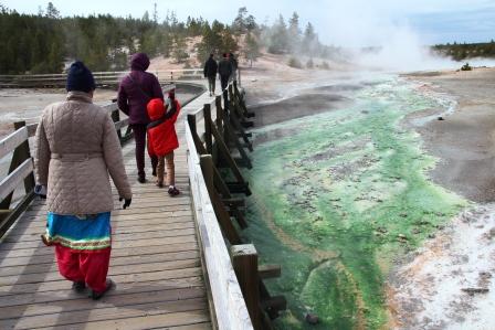 বাইসন ও অন্যান্য বন্যপ্রাণীরা শীতকালে এখানে উত্তাপ নিতে আসে। গিজার বেসিন অনেক সময়ে অ্যালগি, ব্যাকটিরিয়া, আরচিয়া প্রভৃতি থার্মোফাইলের জন্য নানা রঙে সজ্জিত থাকে। ১৯৬৬ সালে Dr Thomas Brock Thermus aquaticus bacterium থেকে এনজাইম নির্যাস বার করেন যা থেকে DNA finger printing (a powerful tool widely used in criminal and medicinal research) করার সুবিধা হয়েছে। অন্যান্য থার্মোফাইল থেকে উৎপন্ন এনজাইমগুলি নানা গুরুত্বপূর্ণ সামাজিক কাজে লাগার সম্ভাবনা প্রচুর। ওল্ড ফেইথফুলের উদ্গীরণের প্রক্ষেপণের নির্ধারিত সময় ছিল বিকাল ৭:৪১মি। হাতে প্রায় দেড় ঘণ্টা সময় তাই হাইকিং ট্রেইল ধরে ঘুরছিলাম।