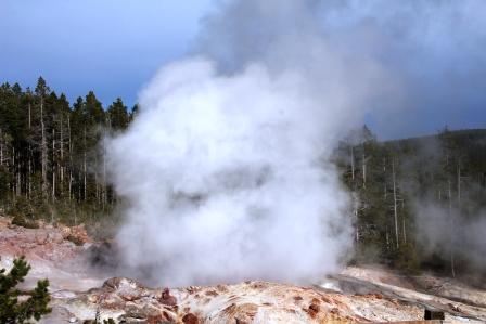 ভূতত্ত্ববিদদের মতে অতীতে ২.১ মিলিয়ন বছর আগে থেকে আজ পর্যন্ত এখানে তিন তিনবার বড় বড় অগ্ন্যুৎপাত হয়েছে। আগ্নেয়গিরি আজও জীবন্ত। গাছপালা, রাস্তা, পাহাড়, বেসিন সব কিছু নিয়েই ইয়েলোস্টোনের ল্যান্ডস্কেপ তথা Yellowstone Caldera। অগ্ন্যুৎপাতের সময় প্রচুর তেজস্ক্রিয় পদার্থ উদ্গীরিত হয়েছিল এবং তার সঙ্গে তেজস্ক্রিয় বিকিরণ ও হয়েছে। মাটির তিন থেকে আট মাইল নিচে রয়েছে পাথর গলা ম্যাগমা স্তর । গিজার বেসিনের হাইড্রোথার্মাল ফিচার তৈরির প্রাথমিক উপাদান হল এই ম্যাগমার তাপ সৃষ্টির ক্ষমতা। উপরিতলে রয়েছে অনেক পাহাড়। শীতের ঠান্ডায় সেখানে জমে বরফ। বৃষ্টি হয় প্রচুর। বরফ গলা জল, বর্ষার বৃষ্টির জল মাটি, বালির স্তর চুঁইেয় মাটির ভিতরে পাথরের স্তরের ওপরে জমা হয়। এই জলই হলো দ্বিতীয় উপাদান। ম্যাগমার উত্তাপে জল গরম হয়। চারশো ডিগ্রি সেন্টগ্রেড বা তার বেশি তাপমাত্রা ছাড়িয়ে যায়। পৃথিবীর অভ্যন্তরের চাপে অতিতপ্ত জল তরল অবস্থায় থাকতে বাধ্য হয়। ওপরে ঠান্ডা জলের নিম্নমুখী চাপ ও অন্যান্য চাপে পাথর স্তরে ফাটল দেখা